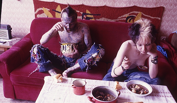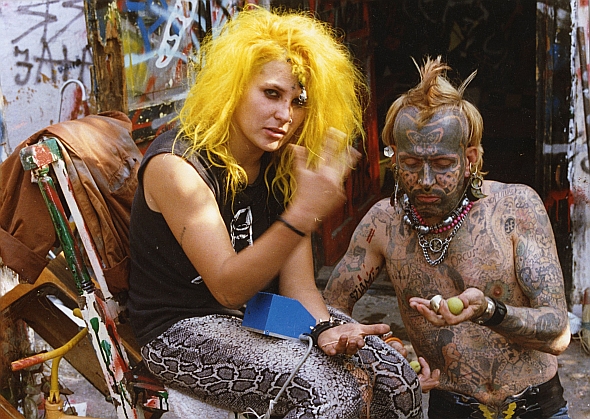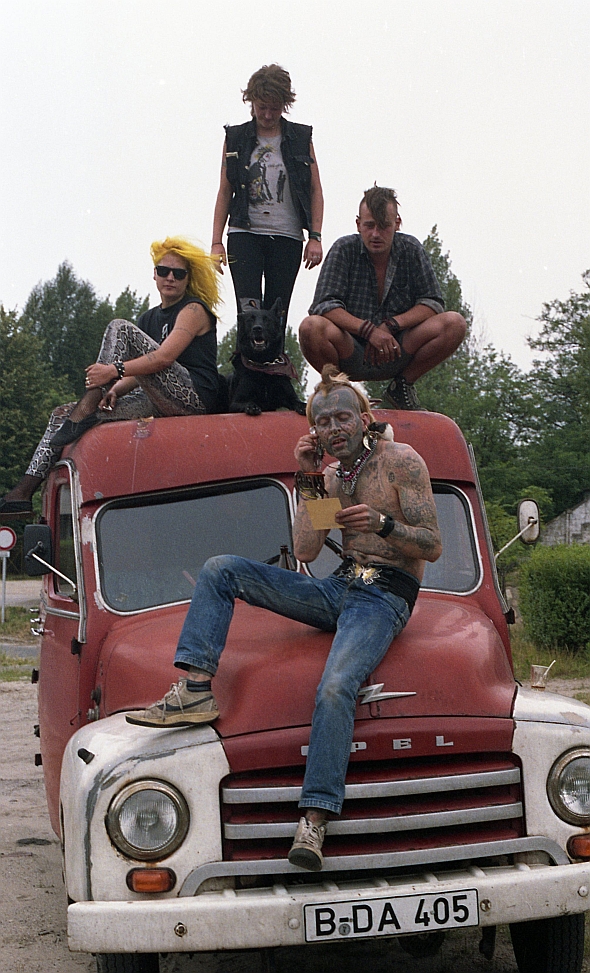 Brigitta Denk és Pillangó. Brigitta nyugat-berlini punk csaj, aki saját, 1923-ban gyártott Opel tűzoltóautójával jött Magyarországra.